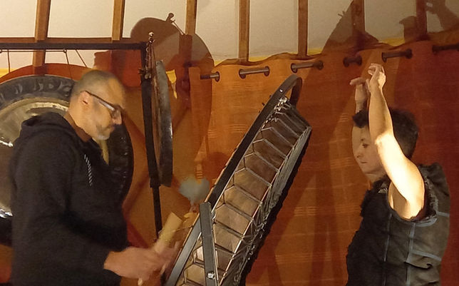 Le spectacle vibratoire "Entre les Mondes" est composé d’une série de contes Inuits accompagnée d’une musique live de gongs et des bols chantants tibétains jouée par Christophe Nédélec.